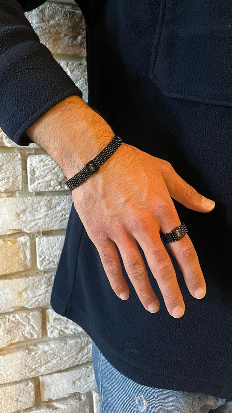 ست دستبند و انگشتر ویتالی مشکی مردانه