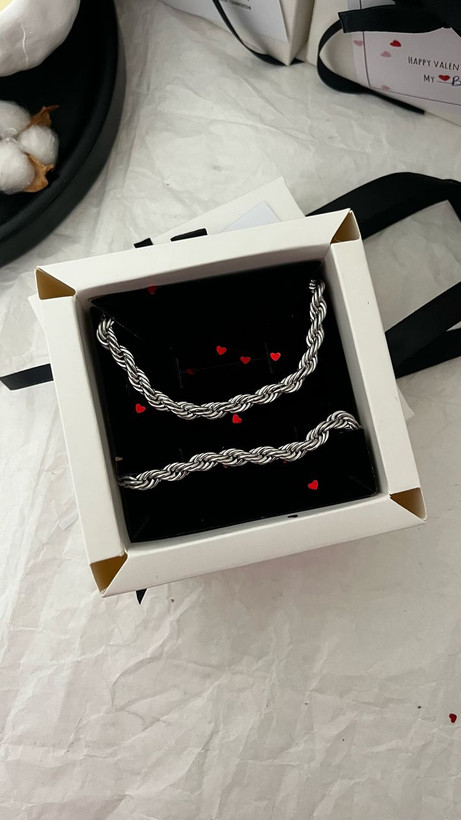 ست دستبند و گردنبند زنجیری نقره ای مردانه