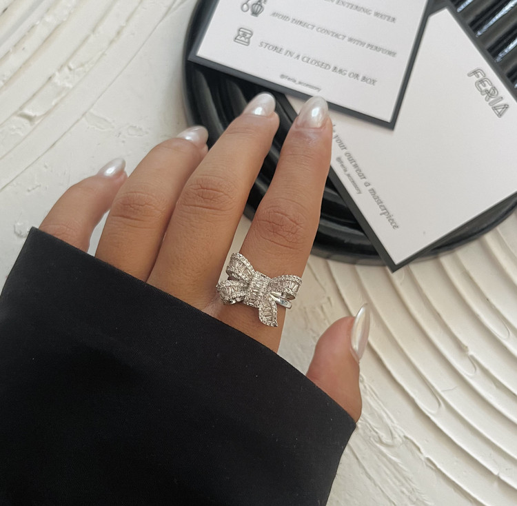انگشتر زنانه پاپیونی نگینی دوبل